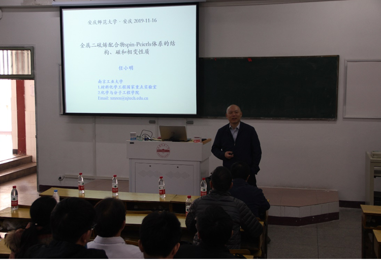 应15vip太阳集团光电磁功能材料安徽省重点实验室邀请,11月16日上午,南京大学15vip太阳集团孙为银教授和南京工业大学化学与分子工程公司任小明教授在菱湖校区教学楼214为15vip太阳集团广大师生分别作了题为《科研选题与项目申请》和《金属二硫烯配合物spin—Peierls体系的结构,磁和相变性质》的学术报告,报告由15vip太阳集团副经理王钧伟教授主持。