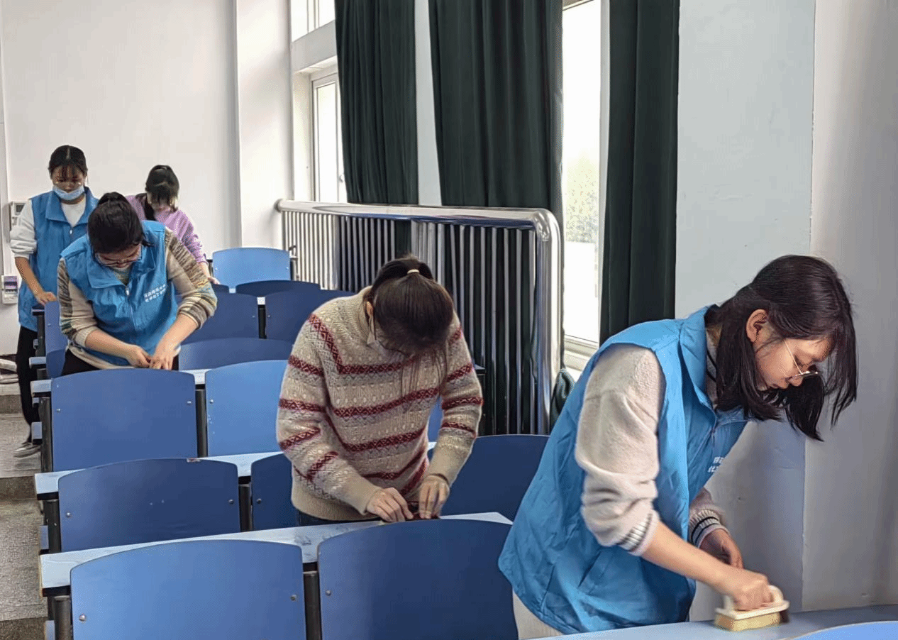 除垢小分队全体队员在文溯楼下有序集合,活动负责人介绍此次活动的清洗规则及注意事项后,同学们分组携带工具前往责任教室,清扫活动正式开始。擦拭黑板、清扫地面、收拾讲台……大家不怕苦、不怕脏、不怕累,分工明确、互帮互助、干劲十足,一个个忙碌的身影在教室、走廊穿梭,活动进行得井然有序。在大家的努力下,每间教室的黑板擦拭得一尘不染,讲台被清理得干干净净,教室里窗明几净,令人心情愉悦。同学们用自己的实际行动为公司增添一份清新,一抹明亮。