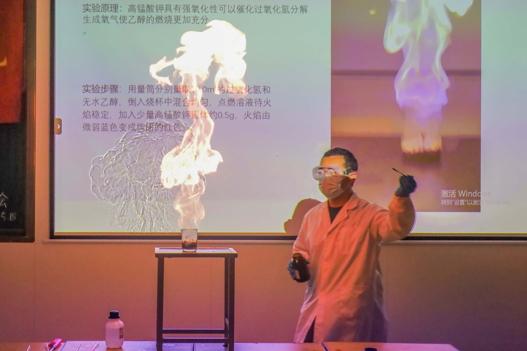 “为什么玻璃棒可以点燃酒精灯?”“火焰颜色是怎么发生变化的?”“火竟然能在手掌上点燃!”不同的金属离子在化学反应下发生碰撞,绽放出绚丽多彩的火焰之花。5月19日,太阳集团老员工科技化学协会举办“五彩火焰”科普活动,一百余名员工齐聚文溯楼108教室,在互动中感受化学火焰与色彩的交织碰撞。