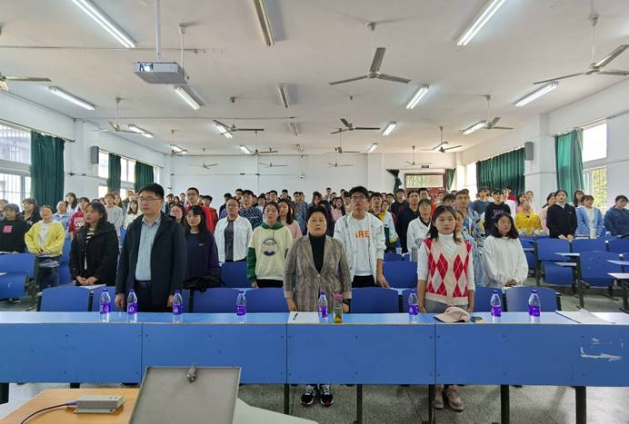 在激昂的《国歌》歌声中开班仪式拉开序幕。杨永久发表了讲话,首先她对能够进入党校学习的182名学员表示祝贺。她强调,作为一名入党积极分子,应要在思想上、行动上积极向党组织靠拢,珍惜此次学习培训的机会,严格遵守学规,好好学习,紧密结合专业知识和社会实践,做学习、实践的模范,做优良作风的模范,以优异成绩圆满完成党校各项学习。