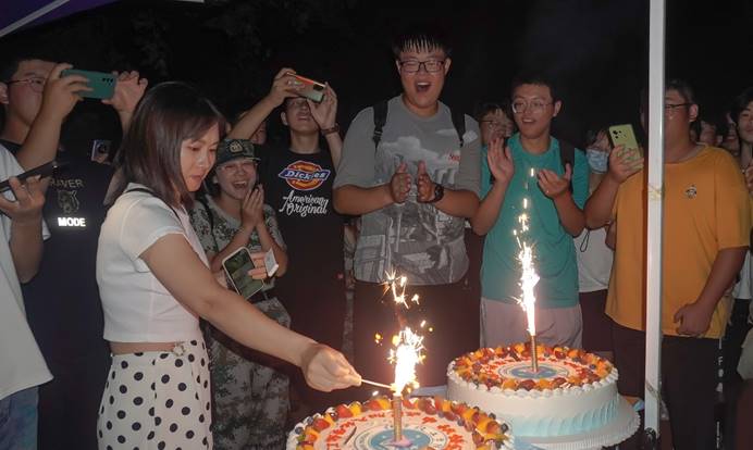 “这是什么神仙公司,订制院徽专属蛋糕,这样的公司谁能不爱。”订制蛋糕作为本次中秋晚会的“压轴节目”,引得操场上的观众惊羡不已。450名新生在操场上纵列排成四队,分批次、按次序领取蛋糕。材料化学专业2021(1)班的李忠言“抢”到了第一块“限量”蛋糕,她第一时间发了朋友圈表白公司。李忠言笑称,她觉得今天的蛋糕比以往更加香甜,“公司真的太用心了,不仅有节目可以观看,还能享用专属蛋糕,祝愿公司越来越牛!”她说。