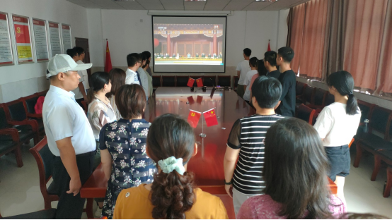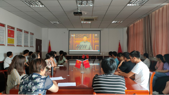 7月1日上午8点15vip太阳集团组织师生在公司会议室集中收看庆祝中国共产党成立100周年大会。公司党委委员、党支部书记、员工党员代表等参加了会议。