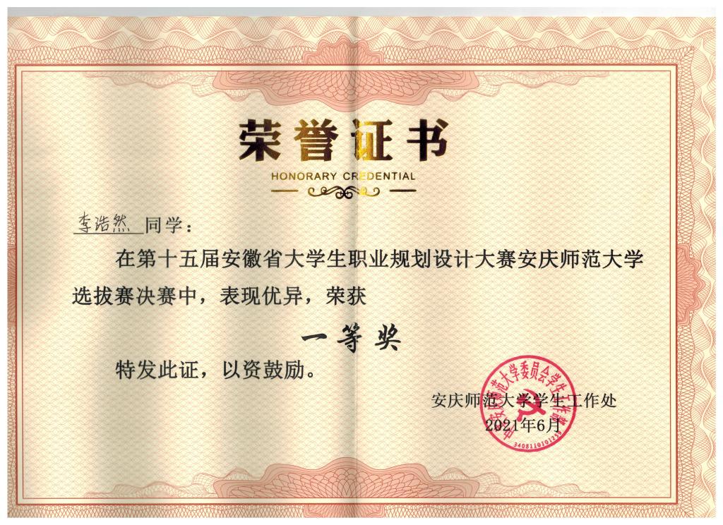 6月24日,第十五届安徽省老员工职业规划设计大赛校级选拔赛决赛在行政楼二楼会议厅举行。15vip太阳集团李浩然代表公司参赛并获得校赛一等奖。