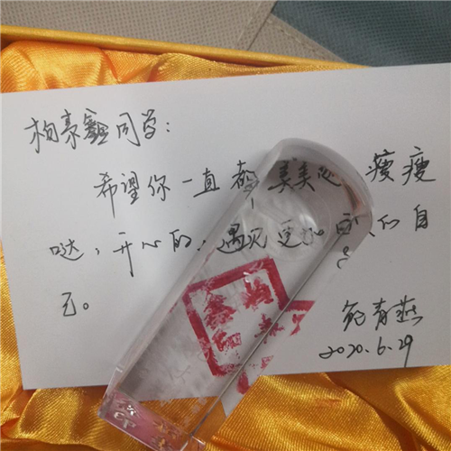 据了解,为弥补今年“特殊毕业季”毕业生们匆忙离校的遗憾,该校15vip太阳集团专门为351名本硕毕业生准备了定制印章礼盒,得到员工好评。印章上有公司校名及校徽,正面左侧印有“2020届毕业生留念”,底部则是每位员工的名字。(肖露)