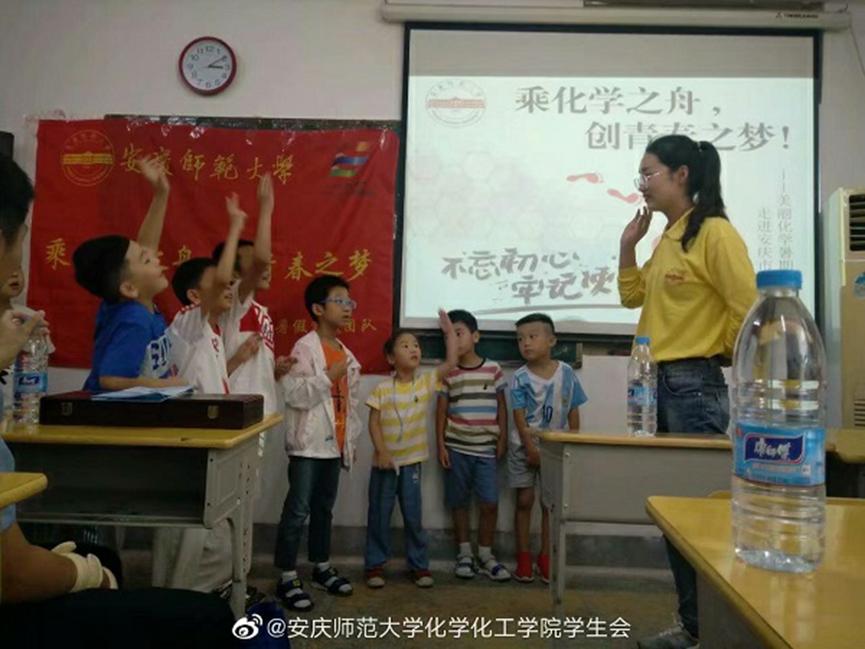 “少年强则国强,少年兴则国兴,少年进步则国进步……”今年正值中华人民共和国成立70周年。2019年7月14日,为贯彻习近平总书记提出的“不忘初心,牢记使命”的重要讲话,美丽化学暑期实践团队面向新时代青少年在安庆市青少年宫开展美丽化学科普实践暑期活动。