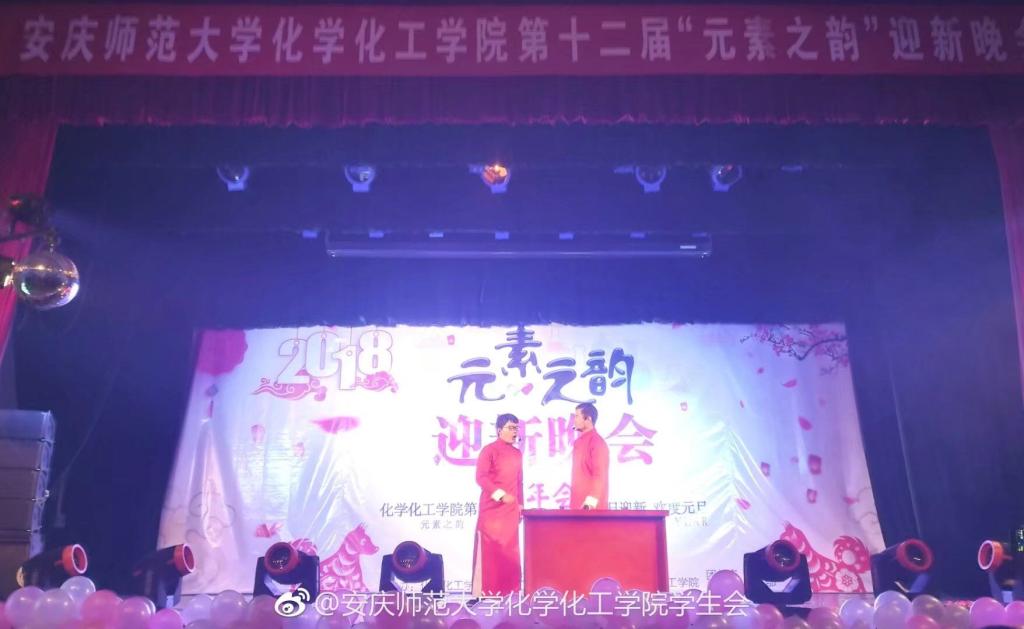 伴随着柔和优美的鼓点声、舞动的双臂,《礼仪之邦》拉开了本场晚会的序幕,奏出了2017级新生的喜悦和激情。在上半篇章“远行·华彩初绽”中,喻晶晶同学带来歌曲独唱《Dream it possible》,接着由张昊等同学带来诙谐幽默的小品《逆行人生》,让大家在欢笑中度过。舞蹈串烧中演绎了力量与含蓄、宁静与活力,在她们的脚下演绎出了青春最美的时光。随后,一首激情四射的《真心英雄》将全场的气氛推向了高潮,大家的情绪也随着音乐而律动。夏源键等同学带来的朗诵《我骄傲,我是中国人》音符高低错杂、感情澎湃细腻。由张存东等人带来的的配音秀《安庆,安庆》,演出形式新颖,内容活泼,贴合大学轻盈欢快的校园生活。下半篇章“聚首·共襄盛举”在热情洋溢的舞蹈《sheep》中展开。小品《上学那些事儿》融合多种幽默搞笑的元素,让观众又一次追忆了青春。情歌《外滩十八号》唯美的歌声唱出了多情的师大,让观众眼前一亮。相声《新时尚》让台下观众直呼过瘾,将晚会的气氛推向了新的高潮。一支优美的古典舞《无归》,韵味盎然,博得台下一片掌声,最后晚会在悠扬动听的吉他弹奏《成都》中落下帷幕。