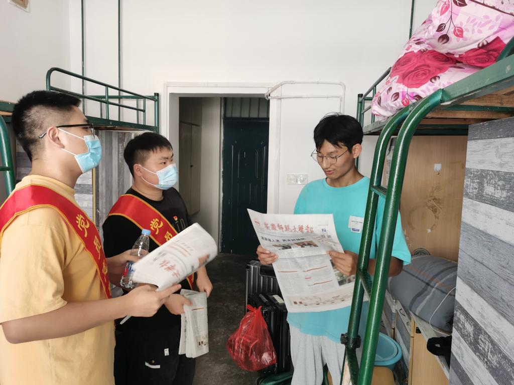 发放校报、普及安全知识、宣传防诈骗指南……除了安排志愿者“一对一”服务新生,公司还特设“党员示范岗”。16位佩戴党员徽章的党员志愿者们发挥先锋模范作用,上午下午轮流值班,走遍120余间新生宿舍,分享自身学习经验,为新生答疑解惑,展现了员工党员的良好形象。